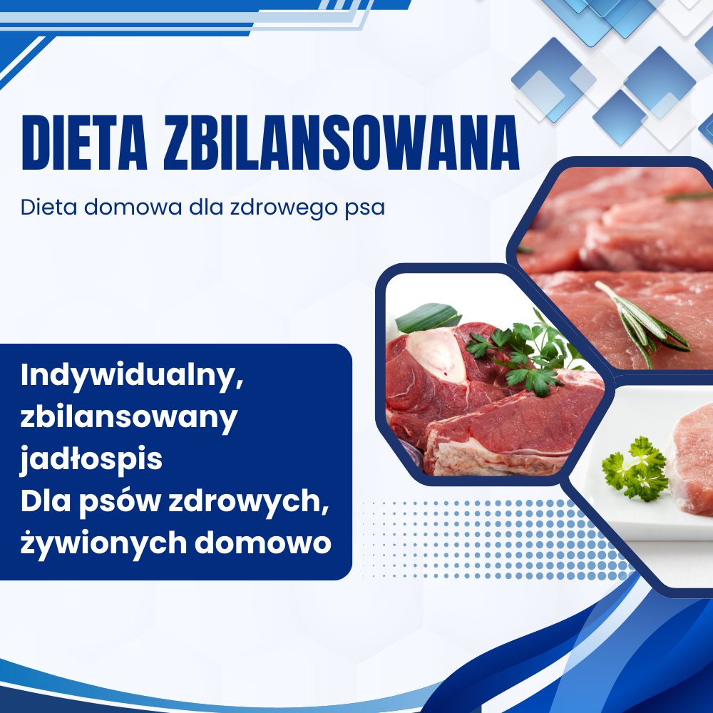 Zbilansowany jadłospis domowy dla zdrowego psa, opracowany indywidualnie. Bez zgadywania, z uwzględnieniem realnych potrzeb i bezpieczeństwa długoterminowego stosowania.